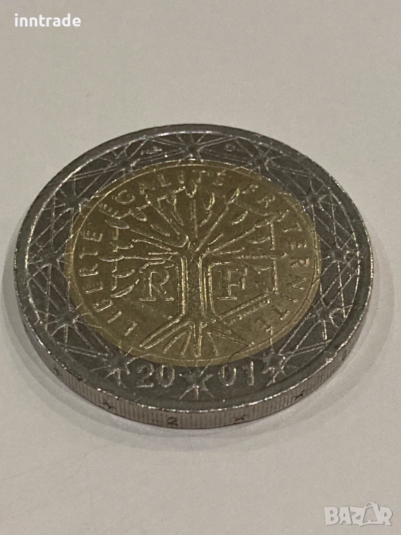 от 2 евро от 2001 г. от Франция с надпис