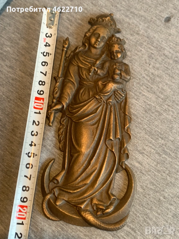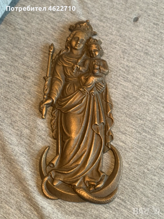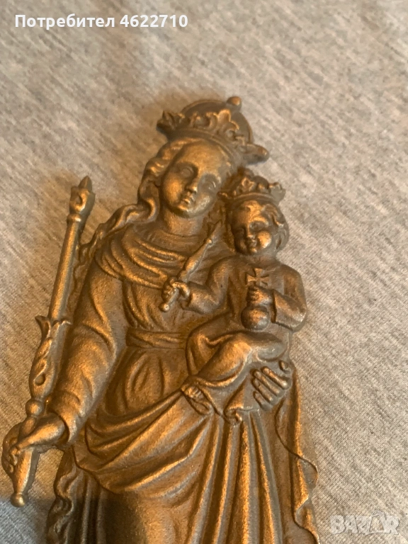 икона бронзов релефен плакет, изобразяващ Мадоната с Младенеца → Обява 53584671