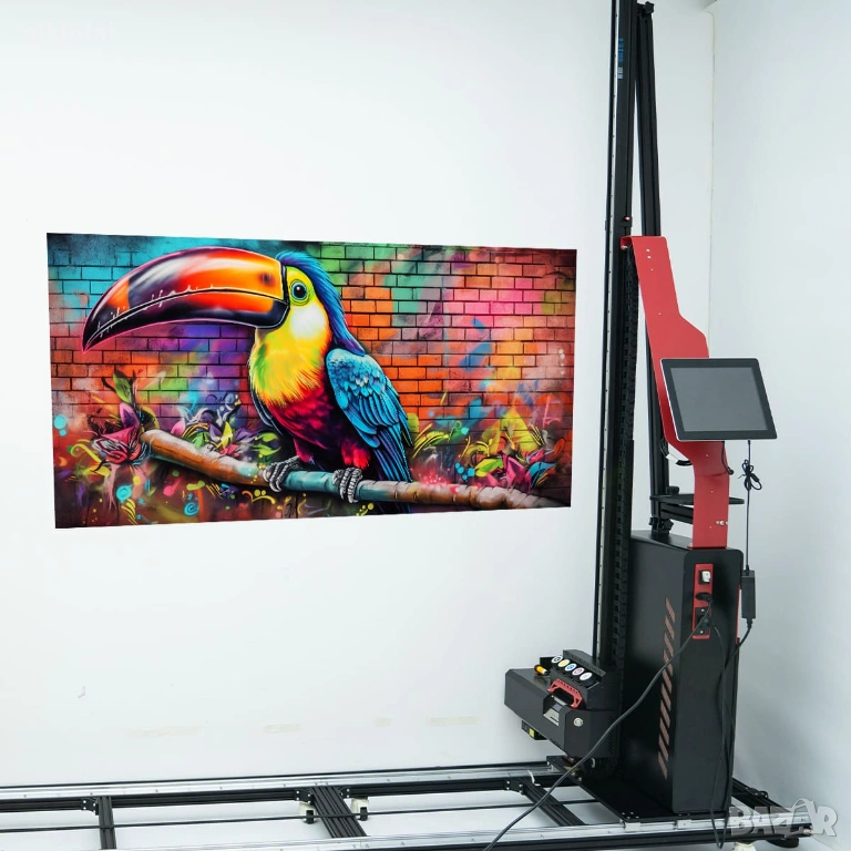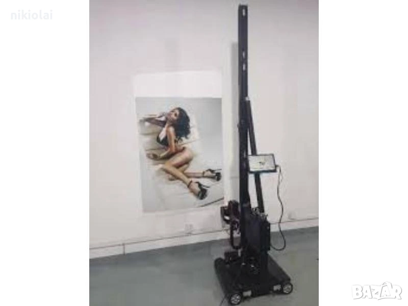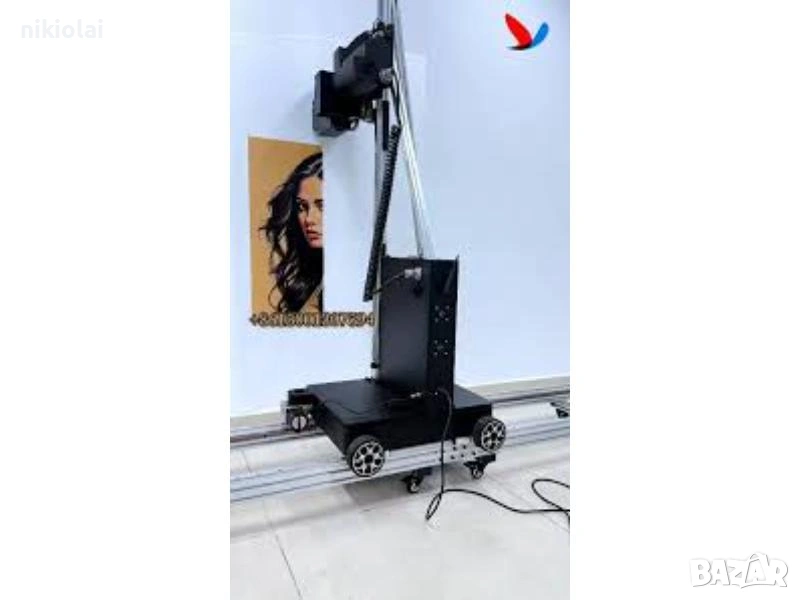 UV принтерът печата върху всякаква повърхност. UV мастилата изсъхват мигновено, не избледняват и могат да се избърсват. Качеството на 4K печат варира в зависимост от избраната скорост на печат. Скоростта на печат варира от 1 до 10 квадратни метра на час. Височината на печат е 3 метра, а ширината на печат е неограничена. Принтерът се движи както на колелца, така и на включените релси. Лентата се накланя на 90 градуса, което позволява печат на пода.
