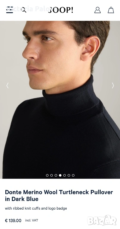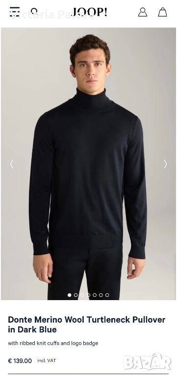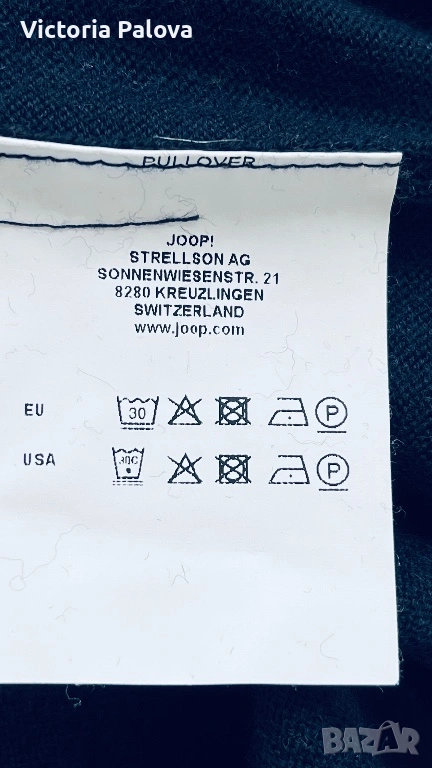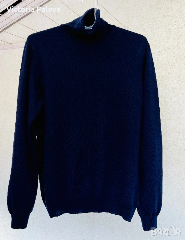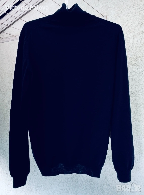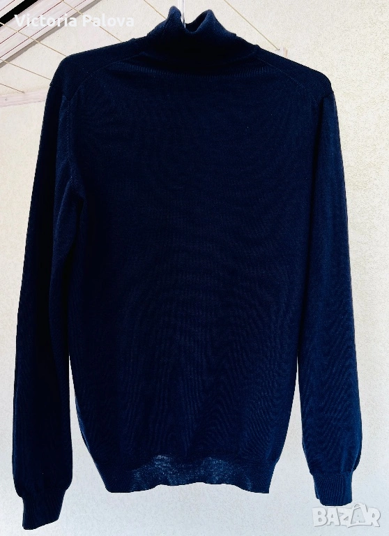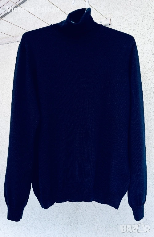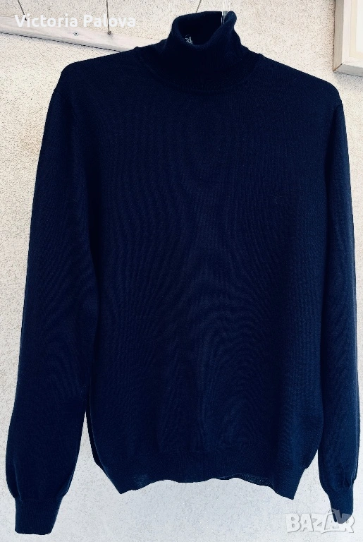 JOOP! е утвърдена швейцарско-немска дизайнерска марка, продавана в премиум магазини и бутици, известна с висококачествени материи, прецизна изработка и европейска елегантност. Това не е масов fast-fashion, а дреха за хора с вкус към класиката и лукса. Има дрехи, които просто топлят… и има дрехи, които говорят за стил, класа и вкус. Този пуловер е от вторите. Елегантен тъмносин пуловер JOOP! модел Donte-NK от премиум линия на марката. Материята е изключително фина, гладка и мека – на допир като коприна, с луксозно падане и много изчистена линия. Стои леко, елегантно и минималистично - типичен “тих лукс”. Отпред има дискретно бродирано лого JOOP! – много фин детайл, характерен за скъпите дизайнерски дрехи. Модел от дизайнерска колекция – рядко предложение на вторичния пазар. Рамо - 43см, ГО - 53см, дължина - 68см, ръкав - 68см.