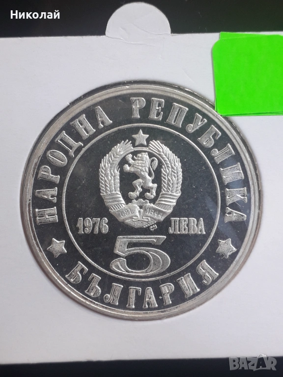 сребърна монета от 5 лева 1976г. "100 години Априлско въстание" → Обява 53584945