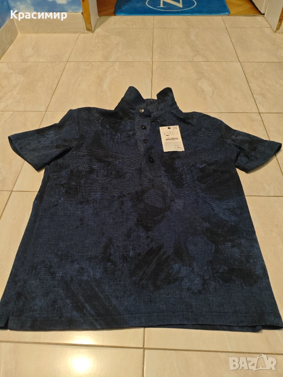 Поло блуза с яка на марката Zara, чисто нова с етикет. Цветът й е тъмно синя, с черни краски.