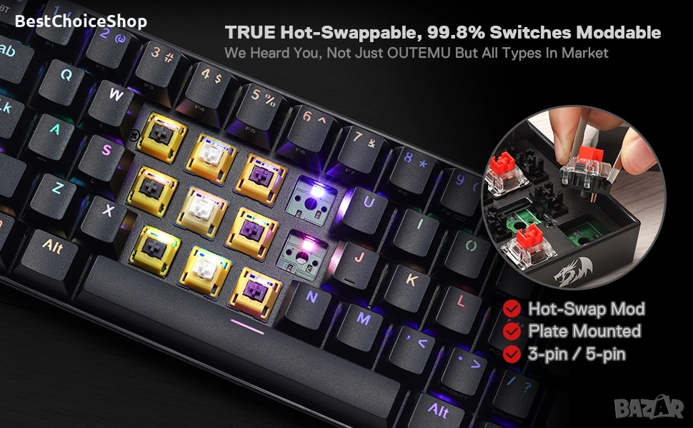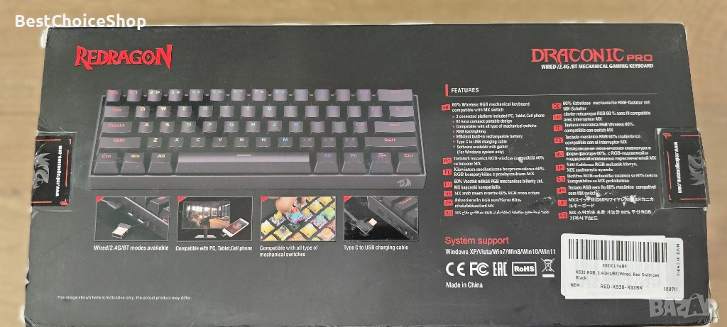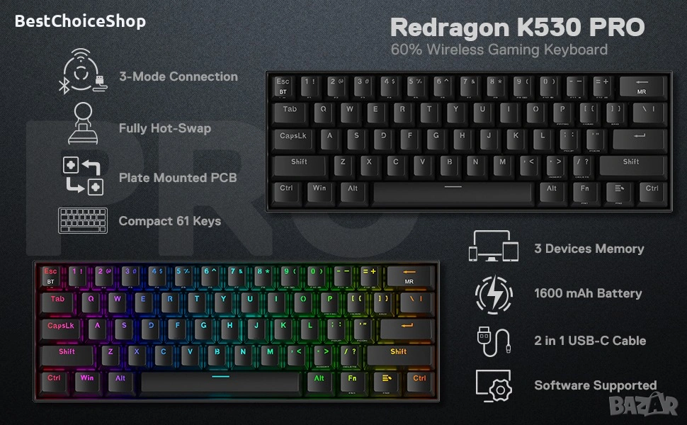 K530 Draconic Pro е механична клавиатура, която разполага позволява 3-режимна свързаност. Разполага със 61 напълно сменяеми клавиша плюс оригинално компактно 60% оформление.