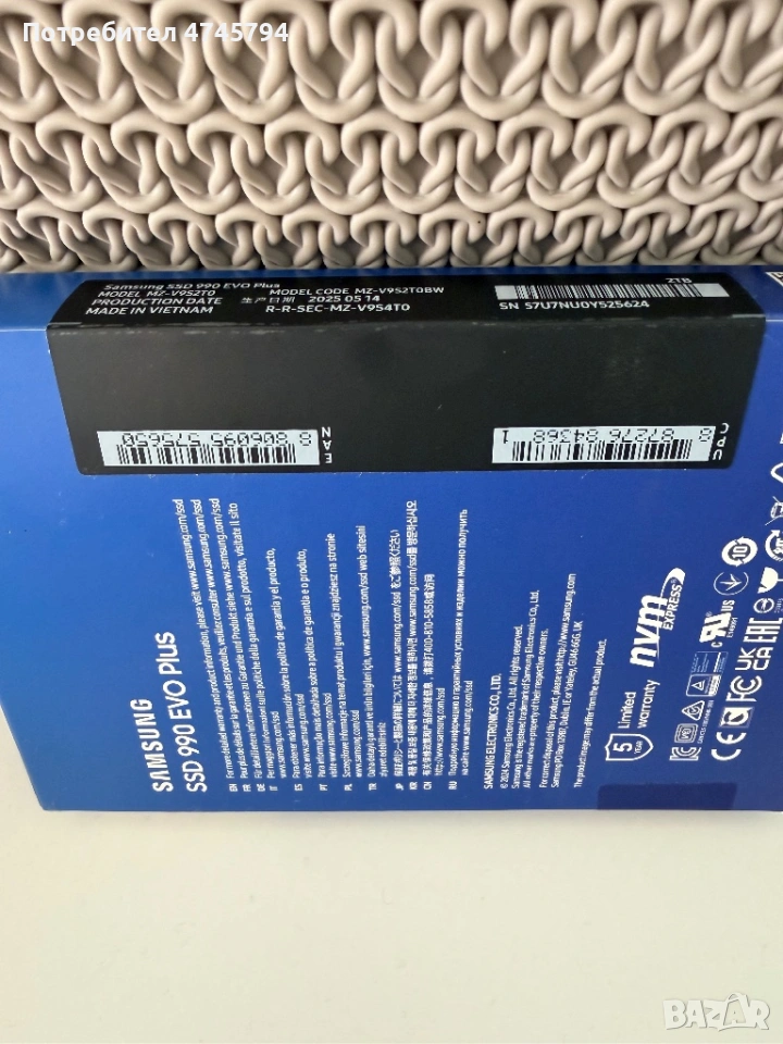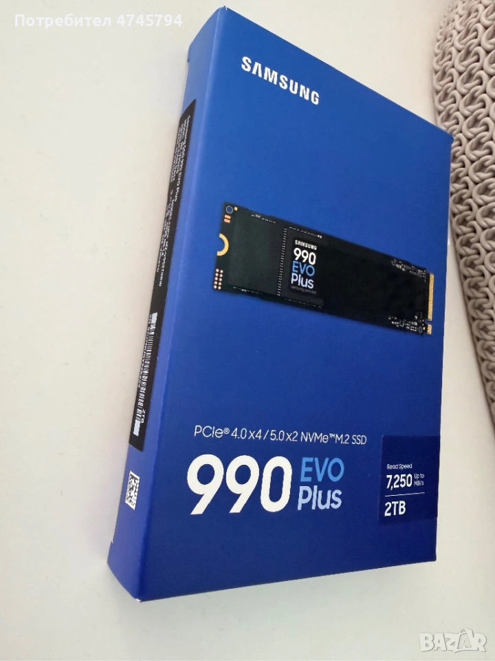Продавам чисто нов Samsung 990 EVO Plus 2TB NVMe SSD. Дискът не е използван и е в отлично състояние. Подходящ е за ъпгрейд на лаптоп или десктоп както и за гейминг и работа с тежки файлове.