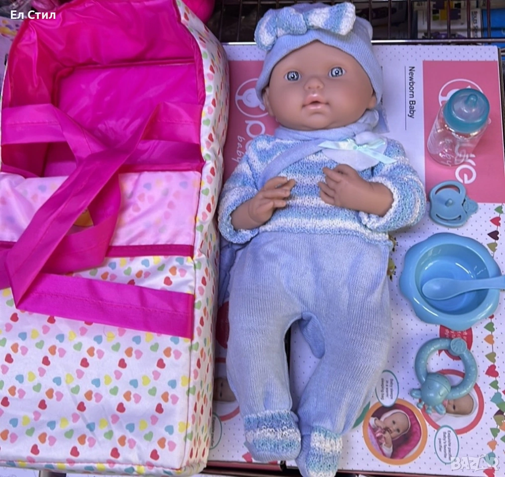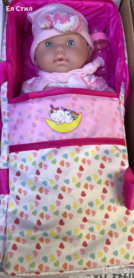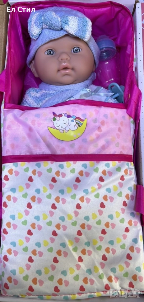 Кукла бебе с пълен комплект – Шише, пижама, легълце и аксесоари - 42 см - НА БЪЛГАРСКИ