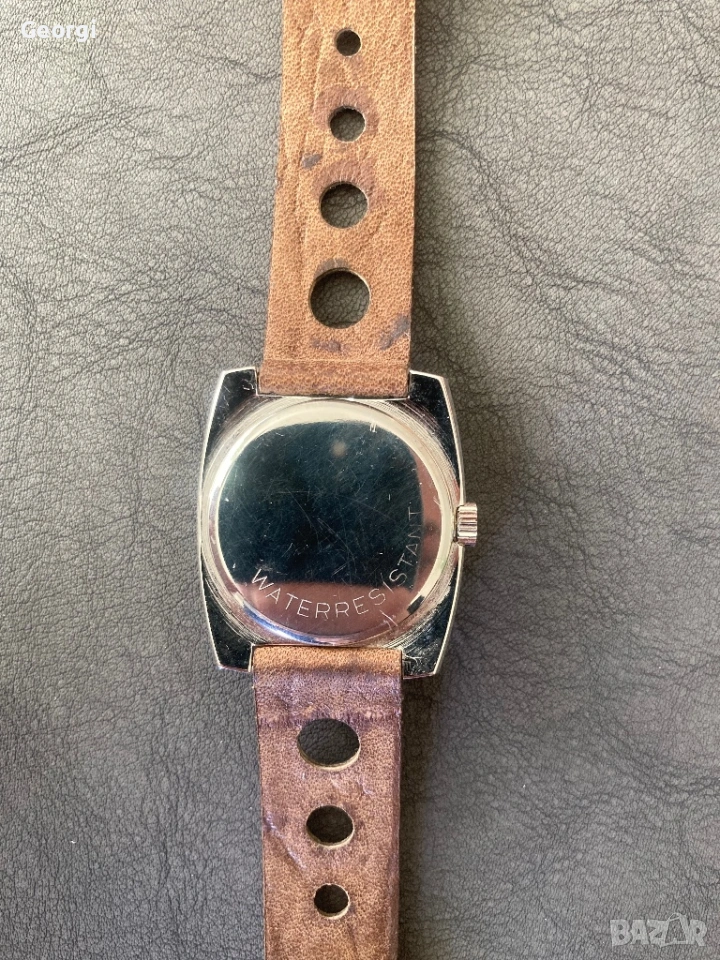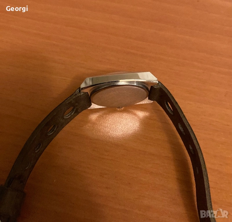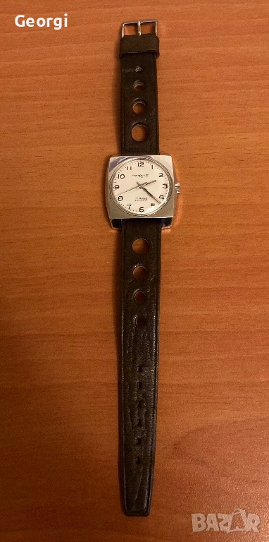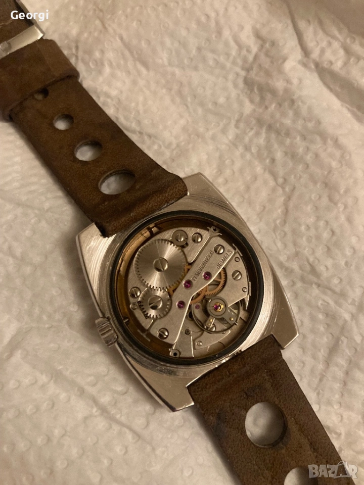 Часовника е в автентичният си вид, всички части са оригинални, включително и каишката.