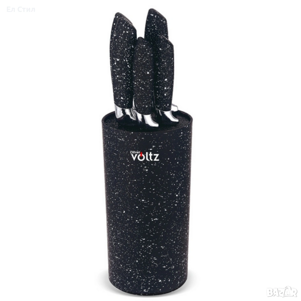 Писнало ти е тъпите ножове да късат продуктите и да бавят готвенето? По празниците това е още по-нервиращо. Комплектът ножове Voltz с цилиндрична поставка и мраморно покритие решава проблема – остри, удобни и подредени на едно място. Висококачествената стомана с мраморно покритие реже лесно, а ергономичните дръжки стоят стабилно. Поставката не задържа мръсотия и спестява място на плота. Избираш между два варианта: черен мрамор или имитация на дърво. В комплекта получаваш 5 ножа: готварски, за хляб, за колбаси, универсален и за почистване. Лесни за почистване, стилни и идеални за подарък.