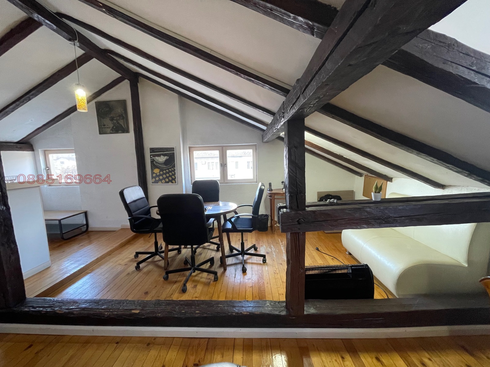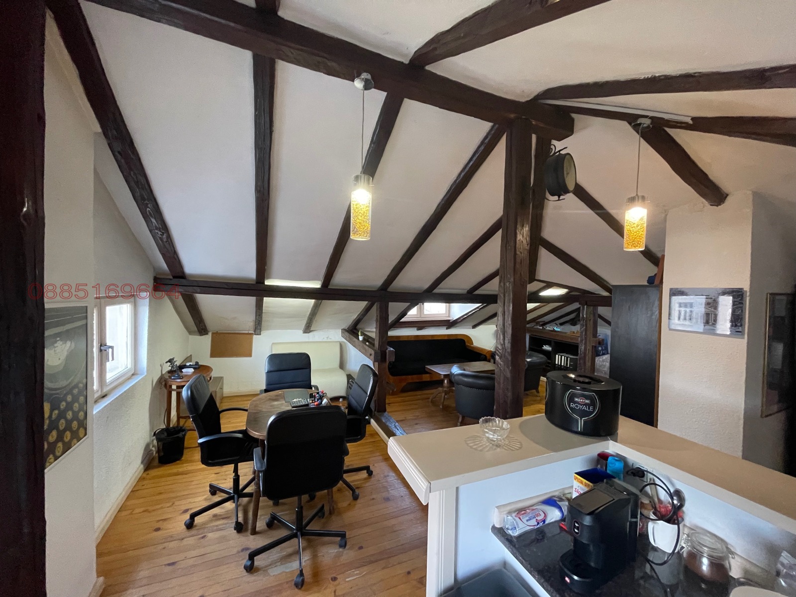 - В момента двата апартамента са свързани с вътрешна стълба и се използват като офиси, идеални за професионална дейност (офис, кантора, кабинет). Могат лесно да бъдат разделени на два самостоятелни апартамента за жилищно ползване или инвестиция.