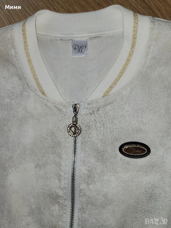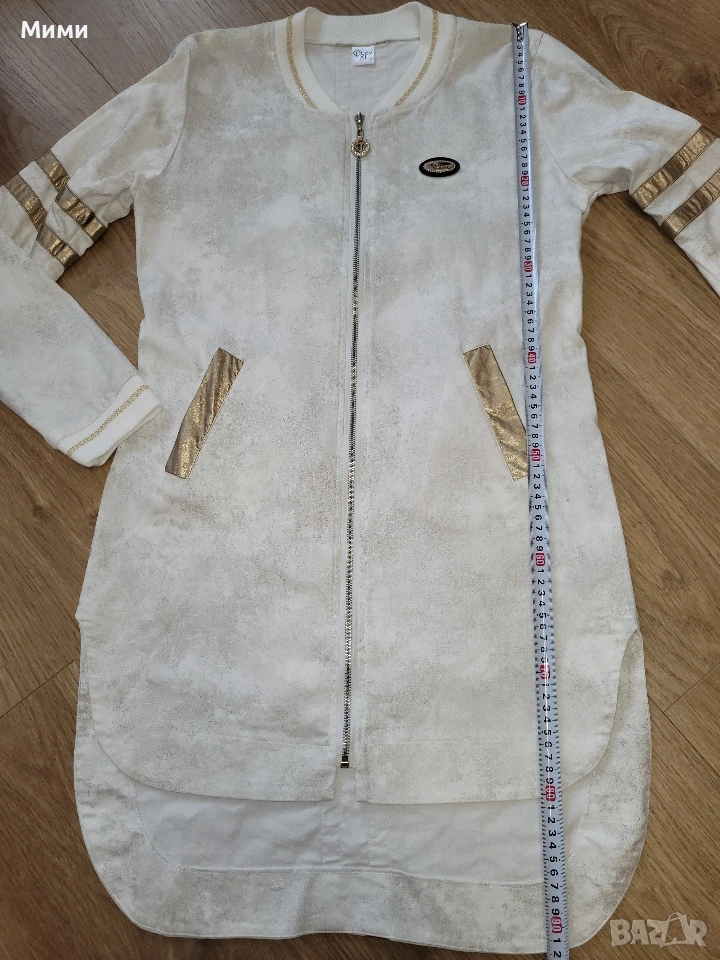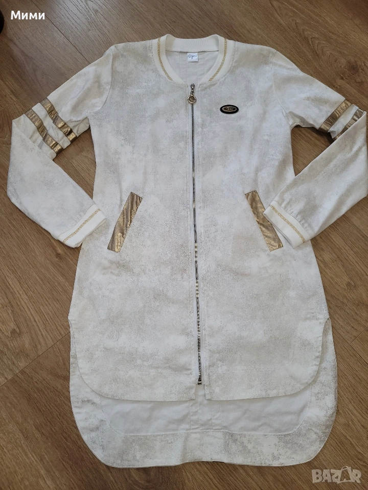Бяло манто Lucy със златисти акценти. По етикет размер ХЛ, но според мен отговаря на Л размер. Обличано е няколко пъти, неразличимо от ново. Подходящо за пролетно време.