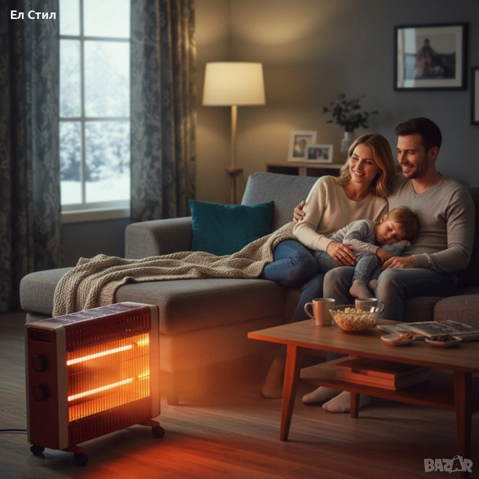 Кварцов отоплител 1500W с 2 степени и мобилни колелца – бързо и безопасно затопляне