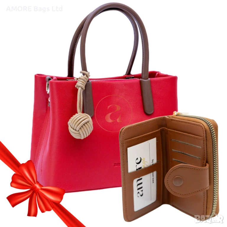 Комплектът "Червена енергия" е дръзко и стилно предложение за жени, които обичат да се открояват. Съчетанието на класическа червена чанта с топъл, кафяв портфейл придава усещане за самоувереност, емоция и модерен характер.