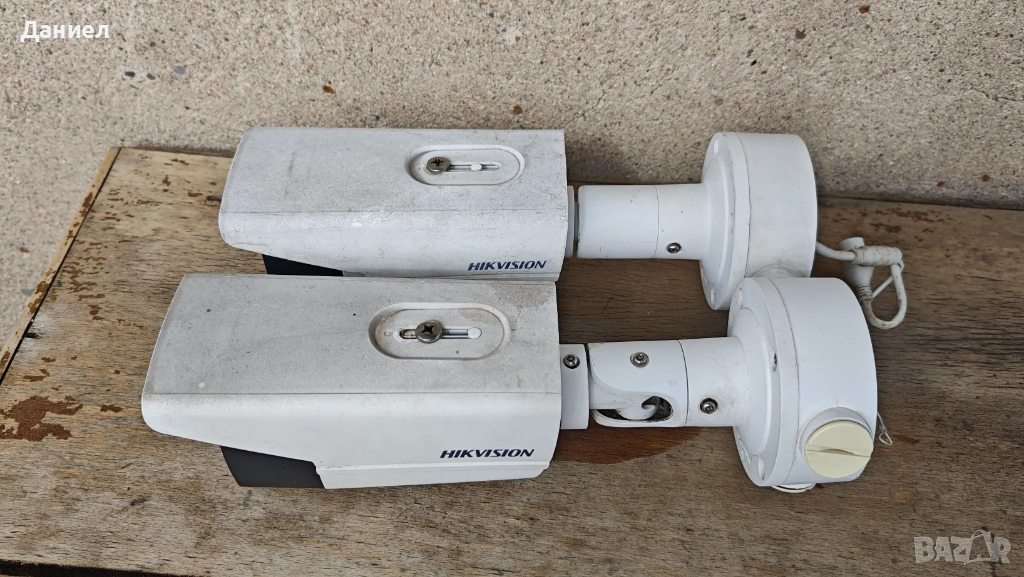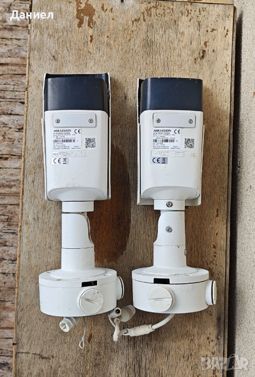 Продавам комплект 2 броя 5MP IP булет камери Hikvision DS-2CD2T55FWD-I5. Камерите са употребявани, което се е отразило на външния им вид, както се вижда от снимките. Били са част от по-голяма система за видеонаблюдение и са сменени поради ъпгрейд с по-нови. Тествани са за кратко за мрежова свързаност, наличие на изображение и ъпдейт на firmware. По-задълбочени тестове не са провеждани, но камерите са работили до последно на обекта.