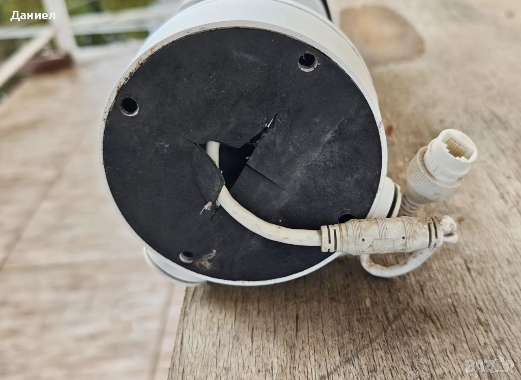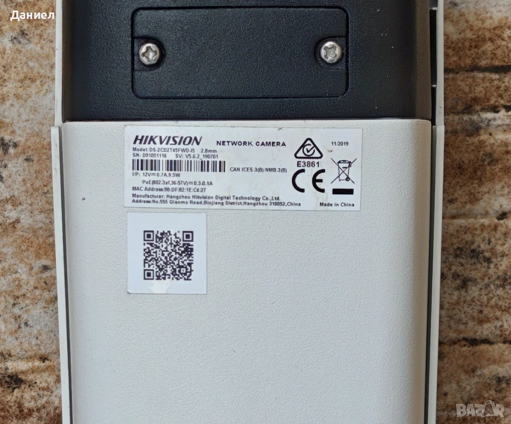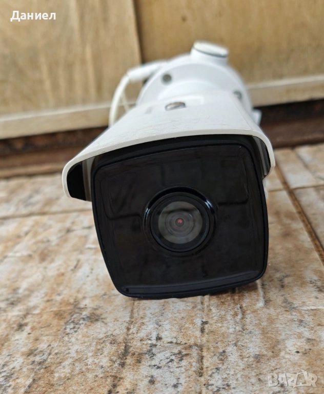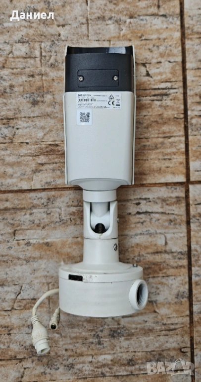 Продавам 4MP IP булет камера Hikvision DS-2CD2T45FWD-I5. Камерата е употребявана, което се е отразило на външния ѝ вид, както се вижда от снимките. Била е част от по-голяма система за видеонаблюдение и е сменена поради ъпгрейд с по-нови. Тествана е за кратко за мрежова свързаност, наличие на изображение и ъпдейт на firmware. По-задълбочени тестове не са провеждани, но камерата е работила до последно на обекта.