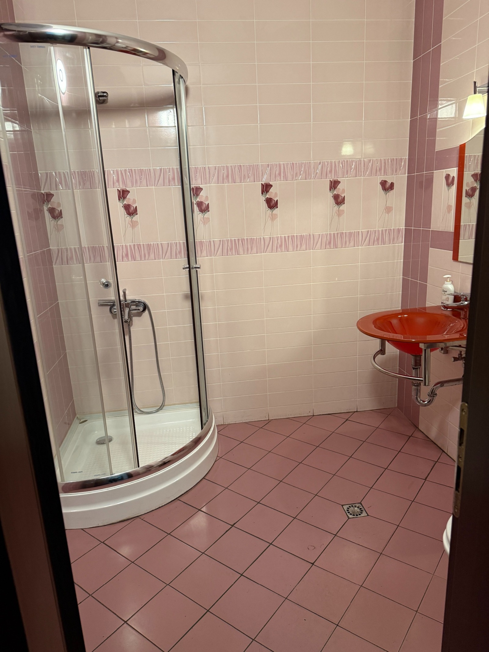 The apartment is in excellent condition and comprises an entrance hall, a spacious living room with a separate kitchenette, two bedrooms, two bathrooms and two terraces. The exposure is southeast. The property has been used as an office; however, according to its legal status, it is residential. Heating is provided by an individual electric boiler.