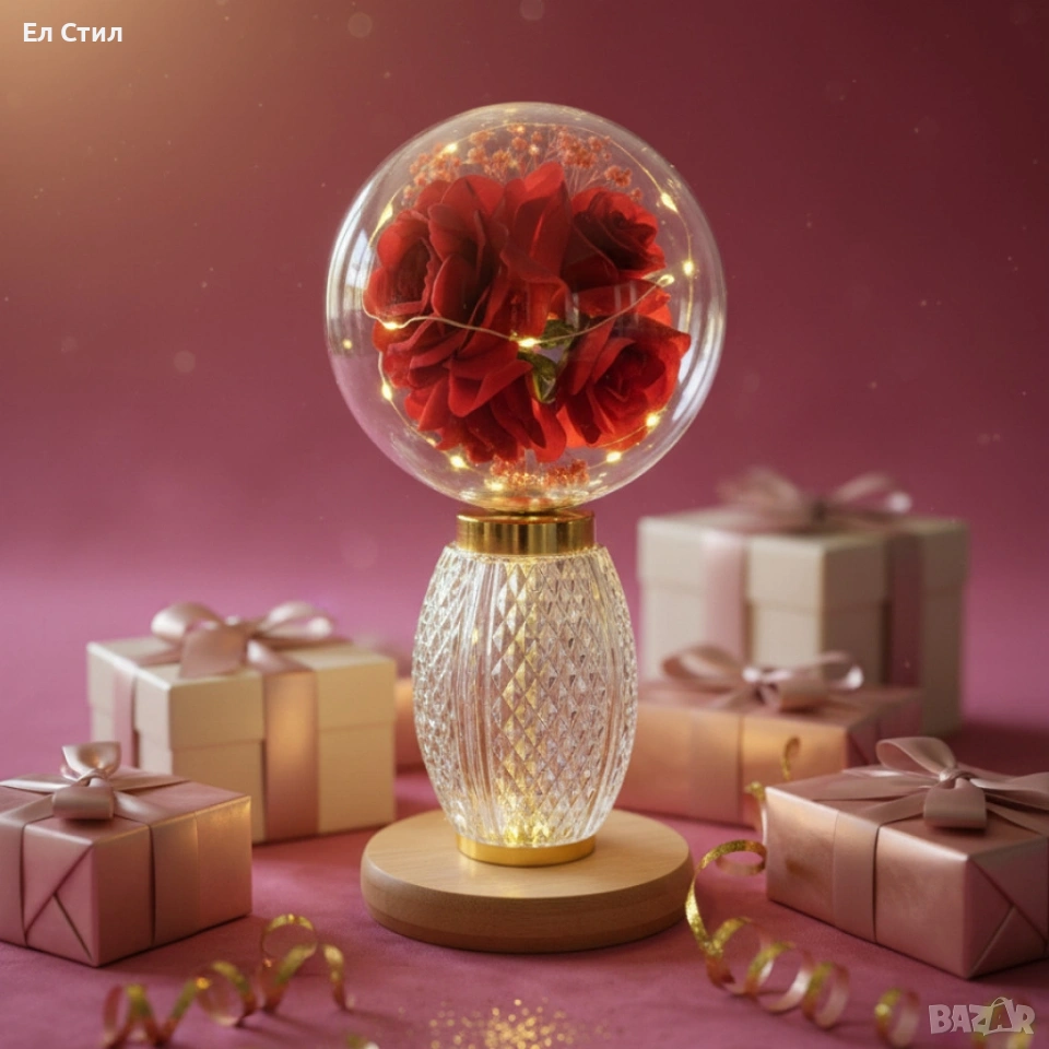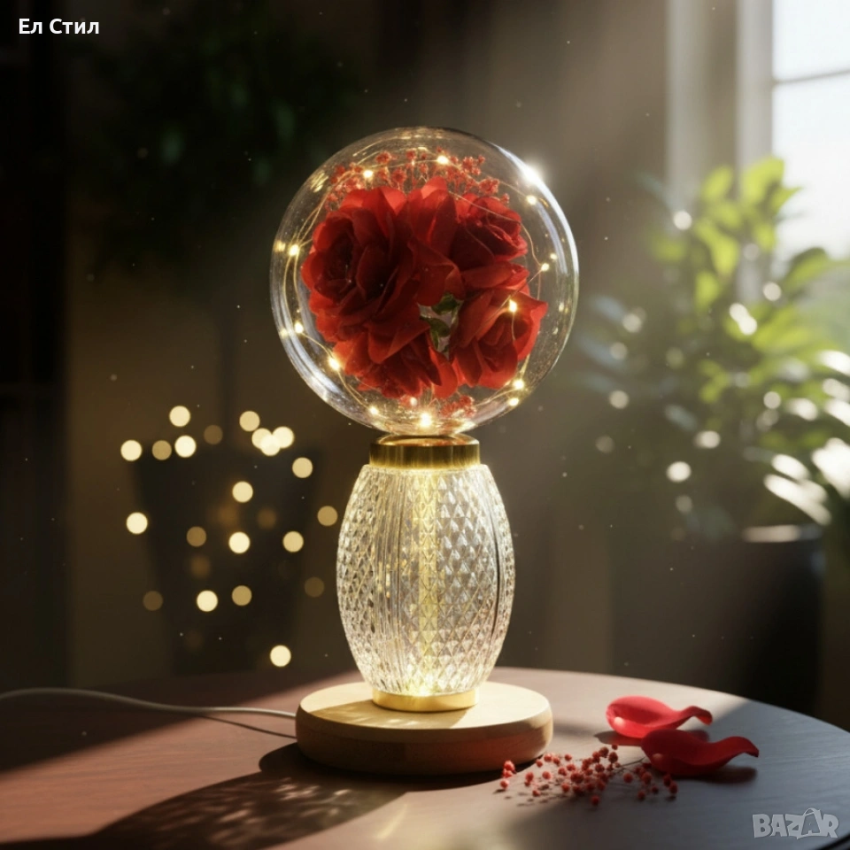 Декоративна лампа с червени рози и мека светлина – за топлина и хармония у дома