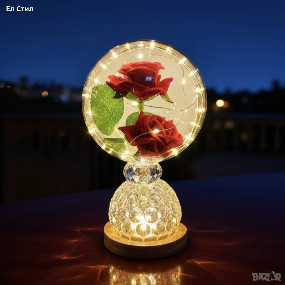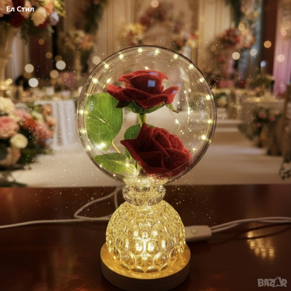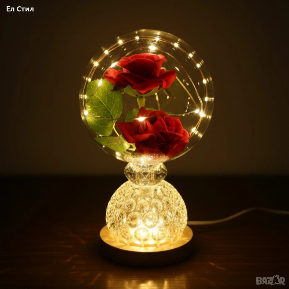 Лампа с вечни рози и топла LED светлина – подарък, който не увяхва