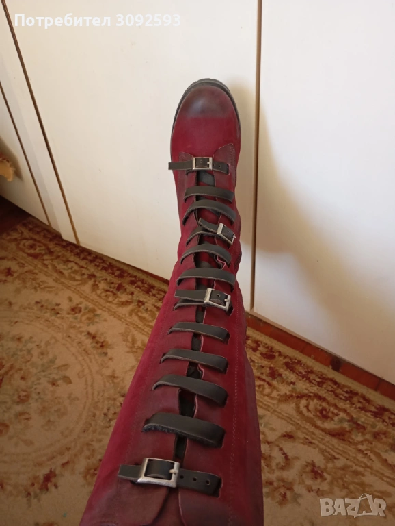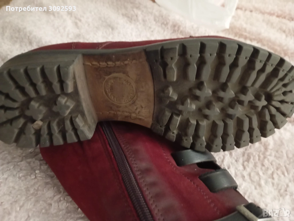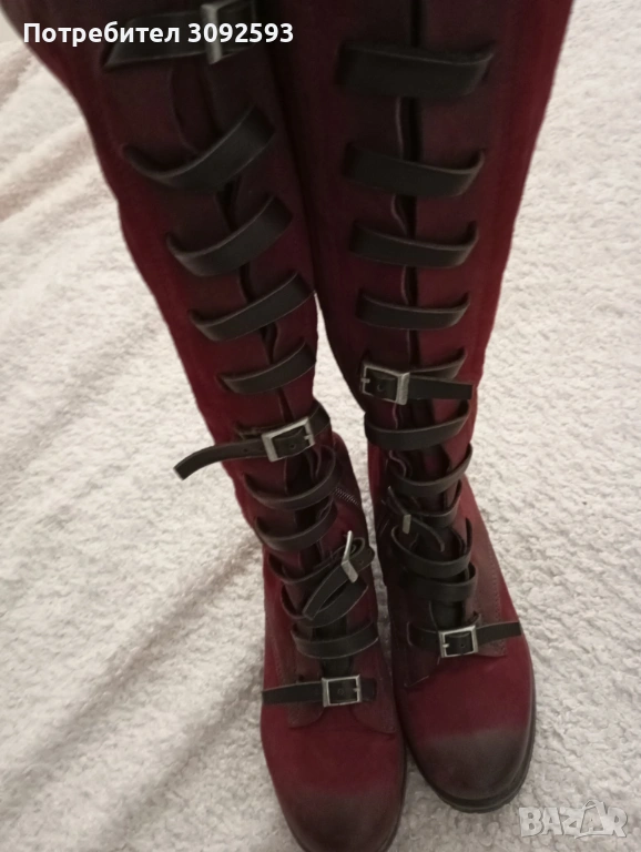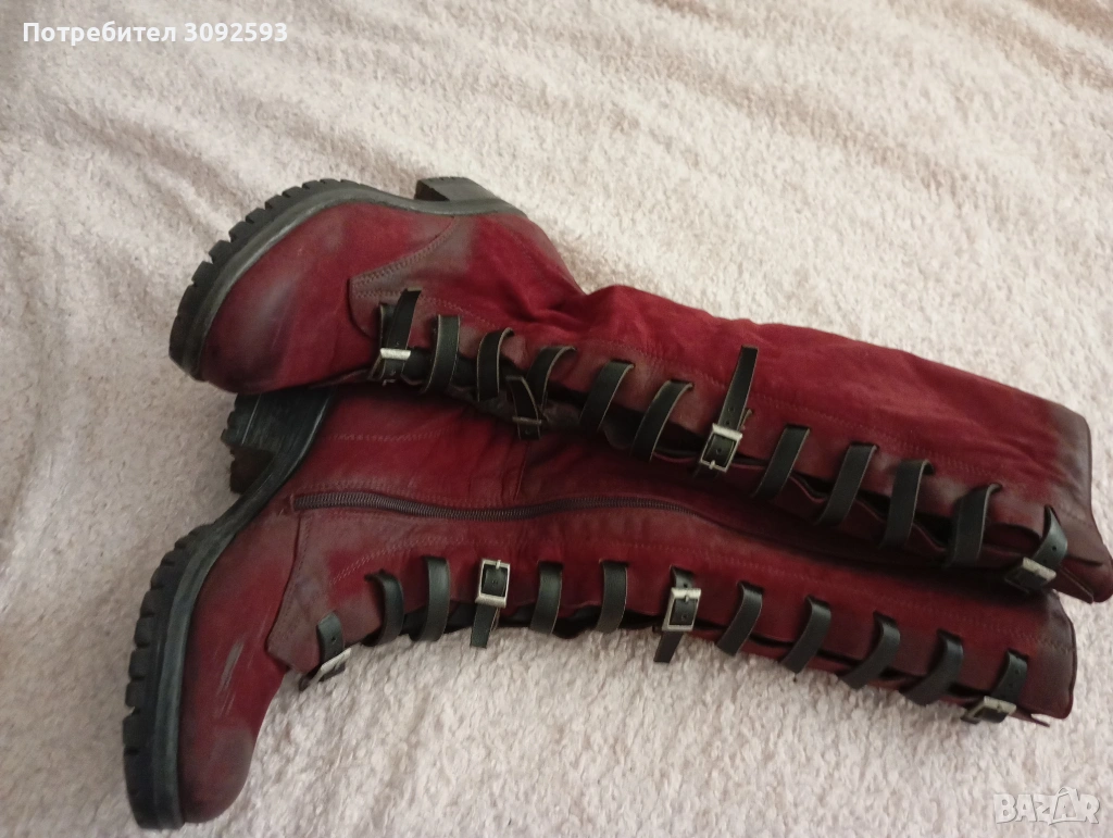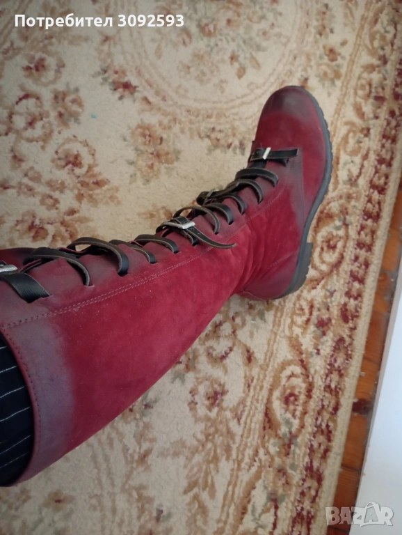 Ботушите са много запазени,обърната естествена кожа,тъмно-червени,на места с по-тъмни ефекти.Стелка - 24,5см.