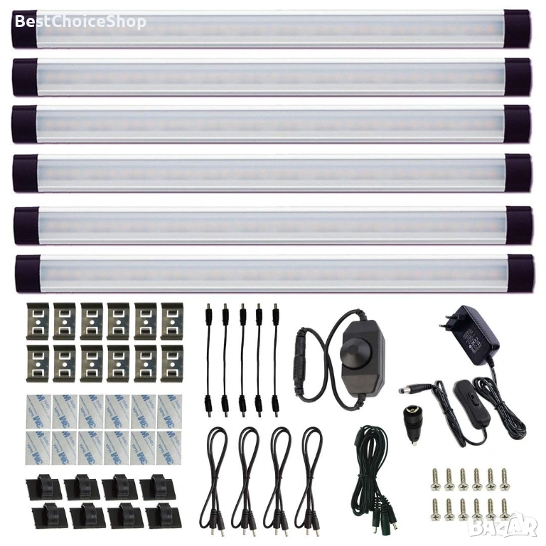 Осветление за под шкафове Кухненска LED с димируема светлина с кабел 6 броя 28 см, за осветление на шкафове,за витрина