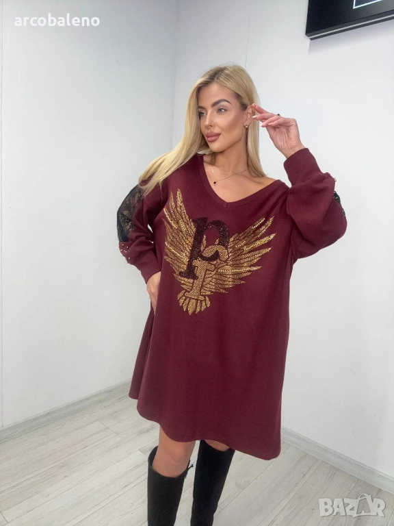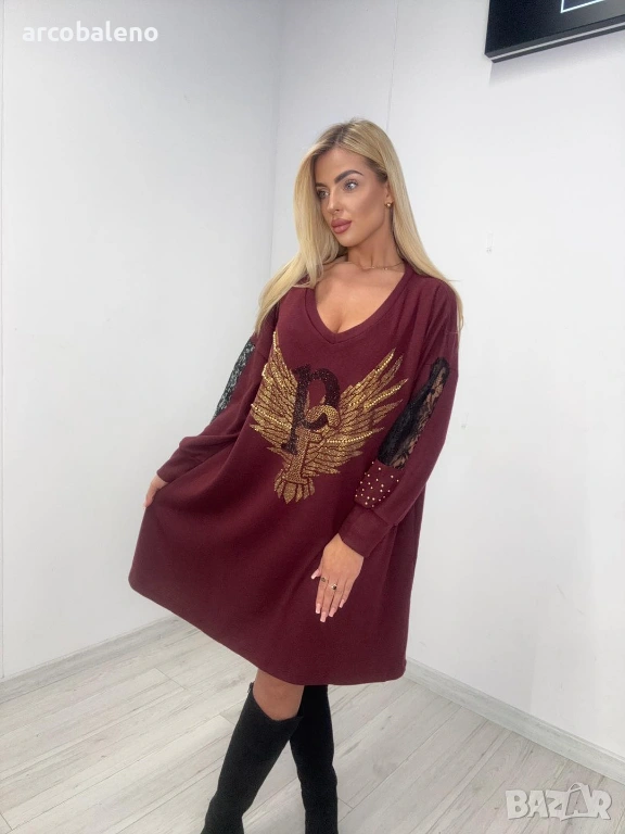 Дамски овърсайз суичър (туника ) с принт и пайети на орел, 2цвята