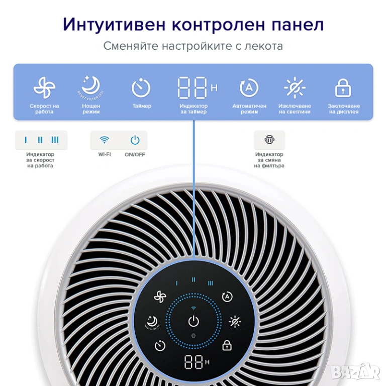 Висококачественият филтър с активен въглен абсорбира миризми от готвене, домашни любимци и цигарен дим, оставяйки дома ви изпълнен със свеж въздух.