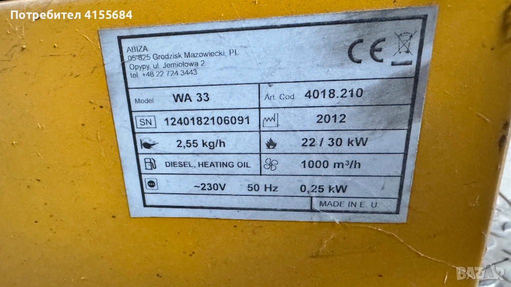 Уредът притежава CE сертификат за работа с дизелово гориво.
