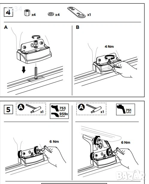Комплектовани с THULE FOOT PACK 753 с монтирани ключалки и 2 ключа в комплекта и стоманени греди THULE.