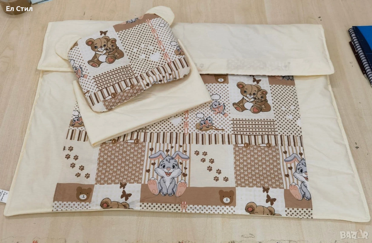 Готови комплекти за количка с вата Завивка 80х80 Долен чаршаф 60х90 Възглавничка мече Цена 19.00€