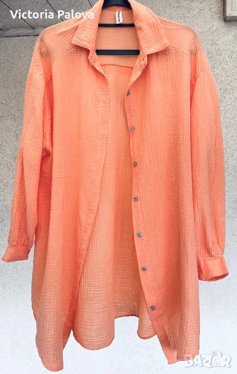 Италианска памучна риза в прасковен цвят - летен шик и комфорт