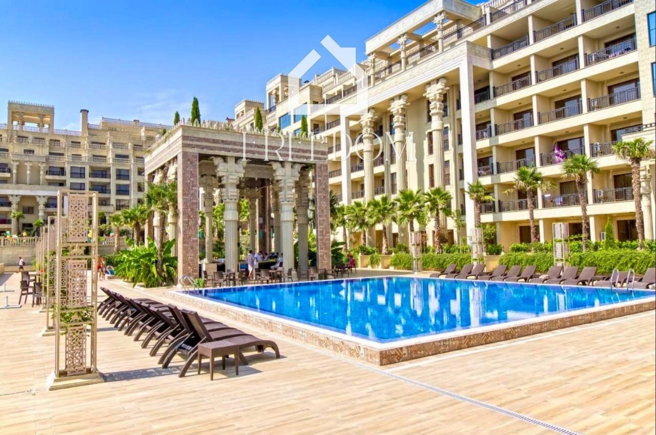 Продава се стилен двустаен апартамент в луксозния комплекс Argisht Partez, разположен само на 150 метра от плажа в курорта Златни пясъци, гр. Варна.