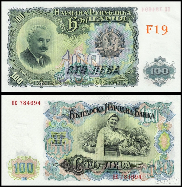 ⭐ България 100 лева 1951 г. UNC ⭐ → Обява 53587482
