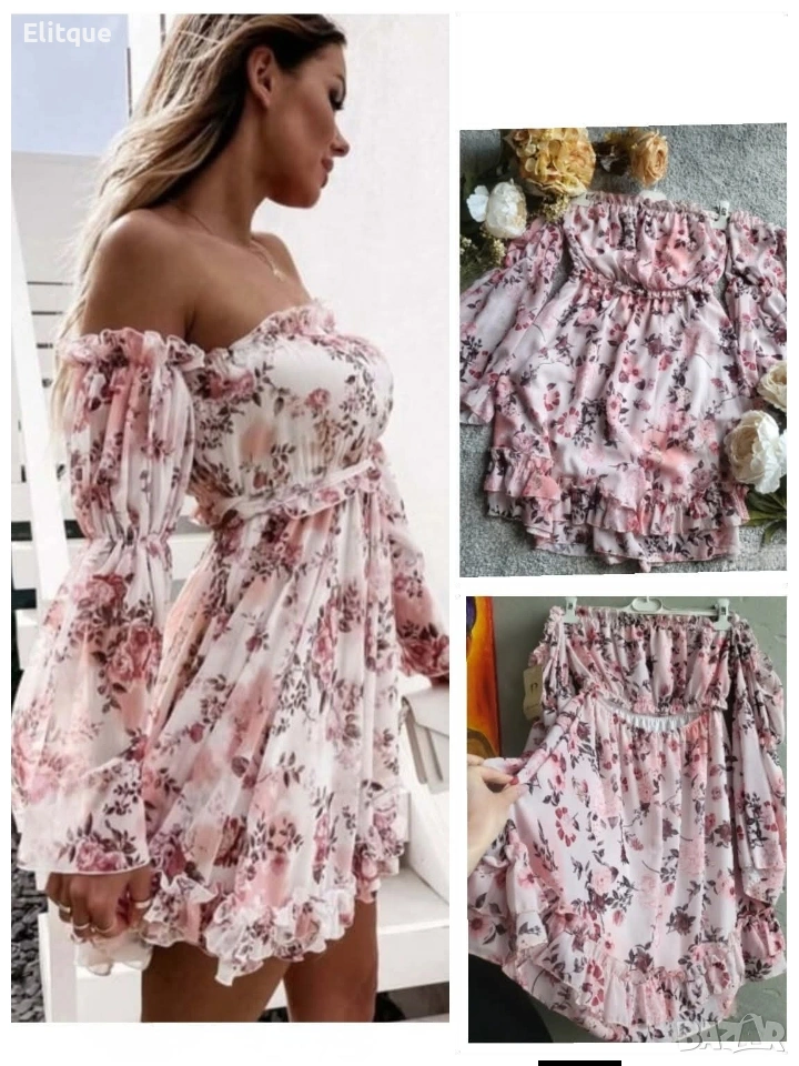 Флорална рокля с паднали ръкави , снимка 1 - Рокли - 53587528 Флорална рокля с паднали ръкави , снимка 2 - Рокли - 53587528 Флорална рокля с паднали ръкави , снимка 3 - Рокли - 53587528 1/3