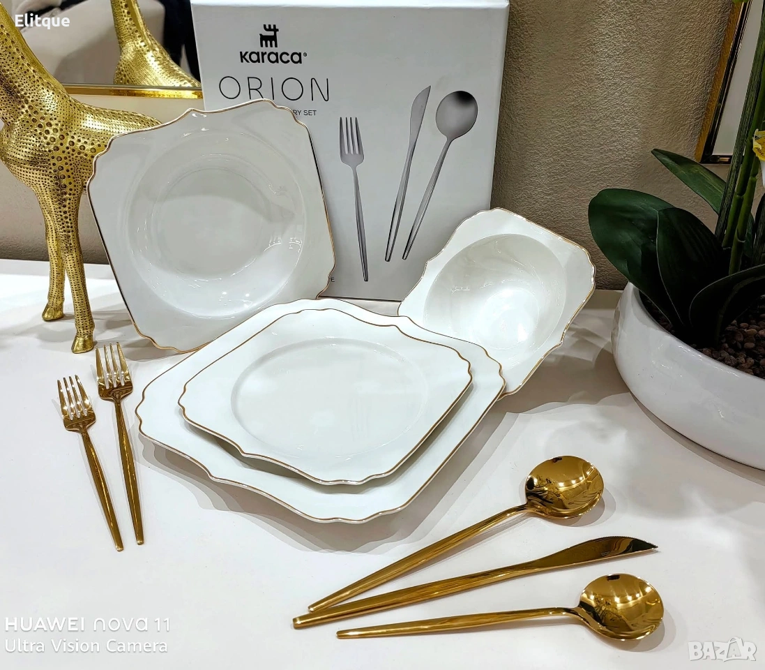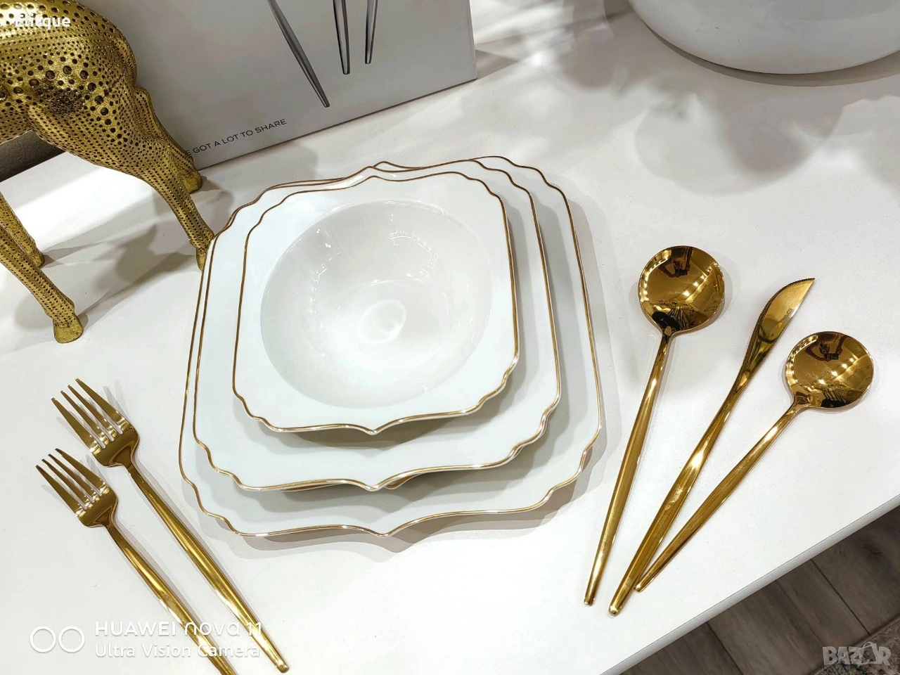 ✨ Комплект прибори за хранене – 24 части, златист цвят с магнитна кутия