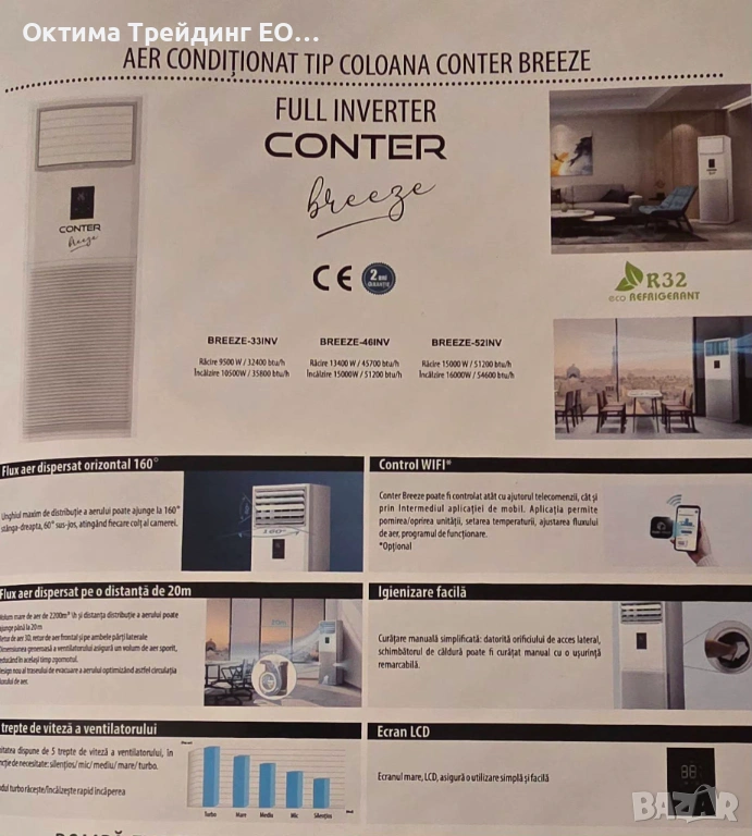 Инверторен климатик CONTER Breeze 12000 btu WiFi included - 300бр+ - 303 евро с ДДС