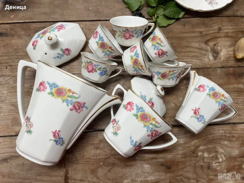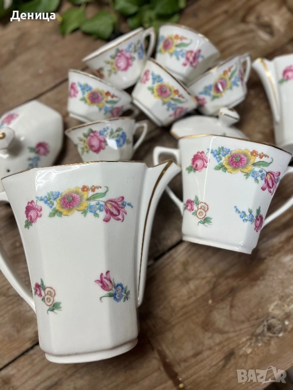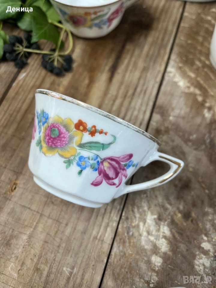 Френски сервиз за кафе Страхотни форми и пъстри букети 6 чаши за кафе-120 мл → Обява 53587794