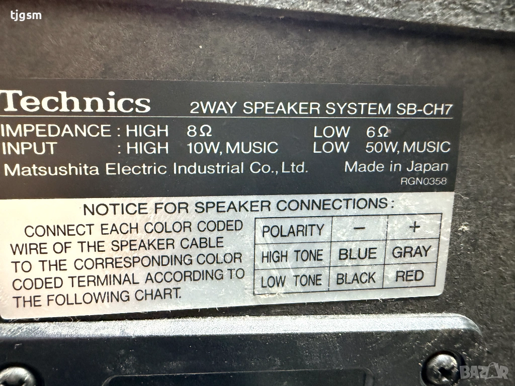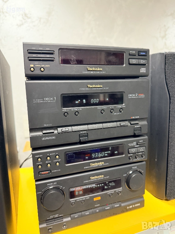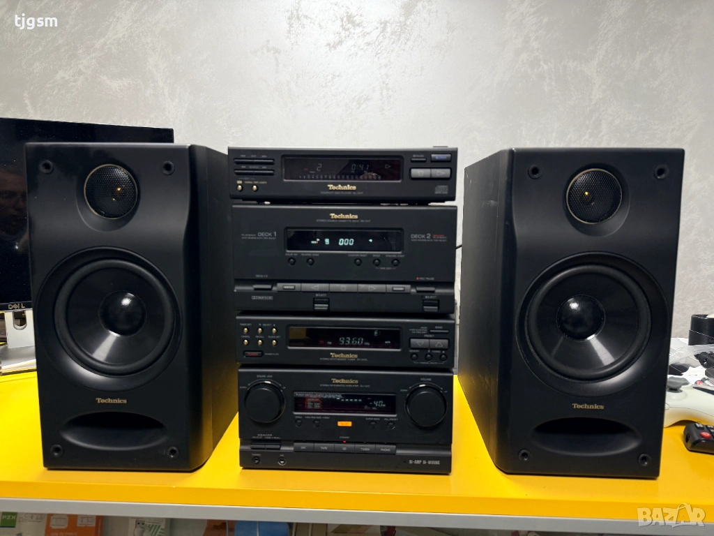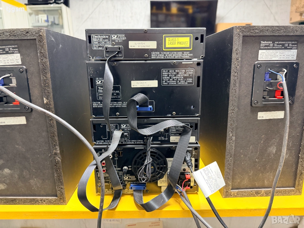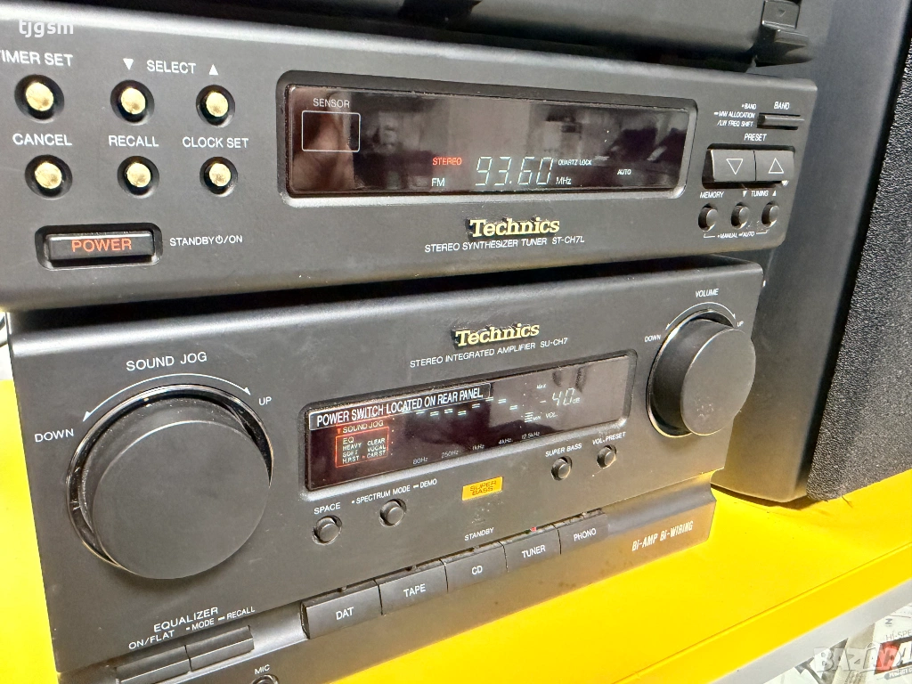 Качествена аудио система Technics , състояща се от 4 отделни компонента (усилвател с еквлайзер SU-CH7, тунер ST-CH7, касетен дек RS-CH7, компакт диск плейър SL-CH7). Функционира безупречно и е с много добър външен вид. Поддържа дистанционно управление но оригиналното липсва. Тунера може да запаметява 40станции, дека е двуглав двукасетен с auto reverse, компакт диск плейъра разчита матрични и CD-R дискове (падащ преден панел), усилвателя е с bi-wiring свързване с вграден вентилатор за по-добро охлаждане, има вграден еквалайзер, с различни настройки и функция за по-силни ниски честоти super bass. Номинална мощност 2x50w/8ohm. Произведена в Япония. Перфектен избор на ниска цена , без компромис в качеството!!!