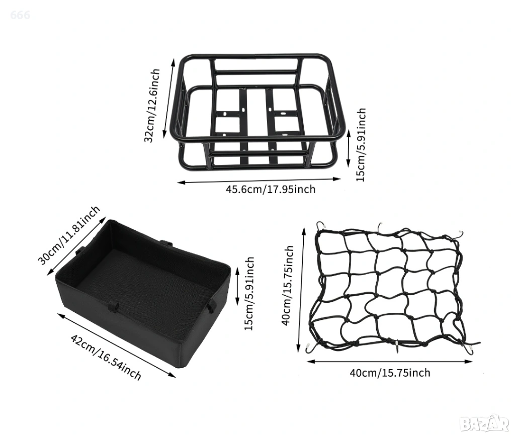 45.6x32x15см Кошница за велосипед, Задна кошница за велосипед, Задна кошница за велосипед с мрежа и дебела подплата.