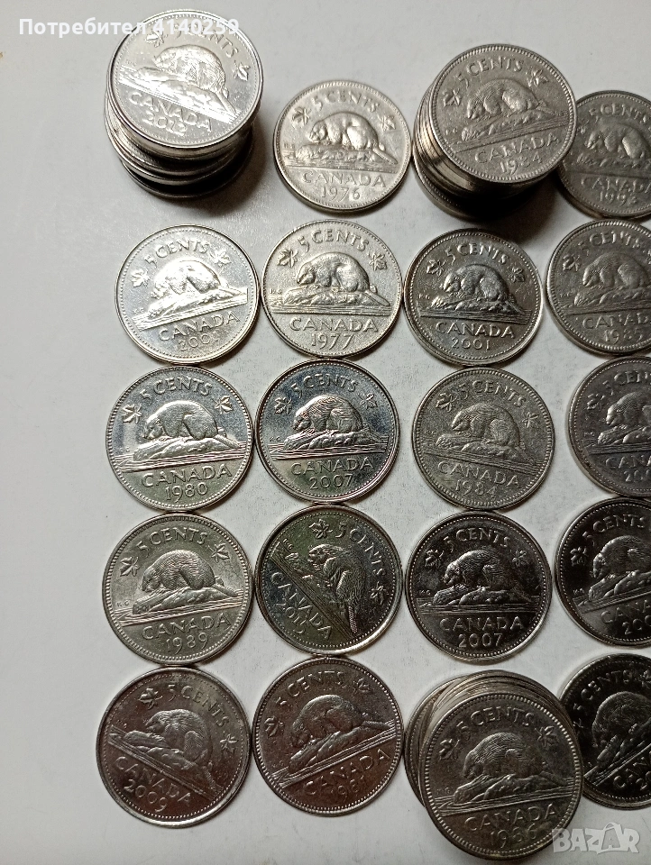 КАНАДА МОНЕТИ 5 ЦЕНТА 106 БРОЯ НЕЧИСТЕНИ РАЗЛИЧНИ ГОДИНИ ИМА ПОВТАРЯЩИ ЦЕНА ЗА 106 БРОЯ СЪСТОЯНИЕ ОТЛИЧНО ПОЛУЧАВАТЕ СНИМАНИТЕ МОНЕТИ РАЗГЛЕДАЙТЕ ДРУГИТЕ МИ ОБЯВИ ДА КОМБИНИРАТЕ ДОСТАВКА ЕКОНТ ЗА ВАРНА ЛИЧНО