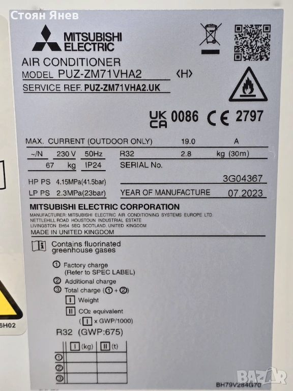 Външно тяло на климатик Mitsubishi Electric - PUZ-ZM71VHA2 - 7 KW - ново → Обява 53588224