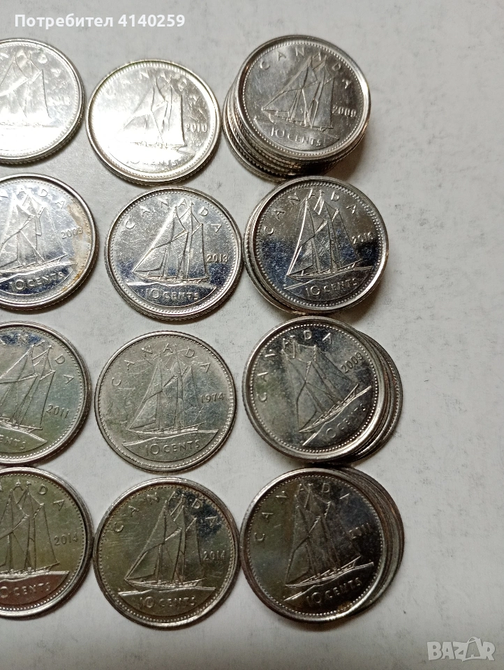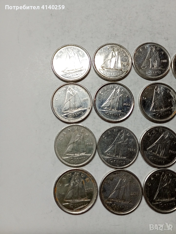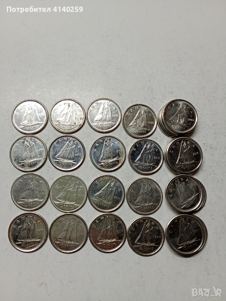 КАНАДА МОНЕТИ 10 ЦЕНТА 33 БРОЯ НЕЧИСТЕНИ РАЗЛИЧНИ ГОДИНИ ИМА ПОВТАРЯЩИ ЦЕНА ЗА 33 БРОЯ СЪСТОЯНИЕ ОТЛИЧНО ПОЛУЧАВАТЕ СНИМАНИТЕ МОНЕТИ РАЗГЛЕДАЙТЕ ДРУГИТЕ МИ ОБЯВИ ДА КОМБИНИРАТЕ ДОСТАВКА ЕКОНТ ЗА ВАРНА ЛИЧНО