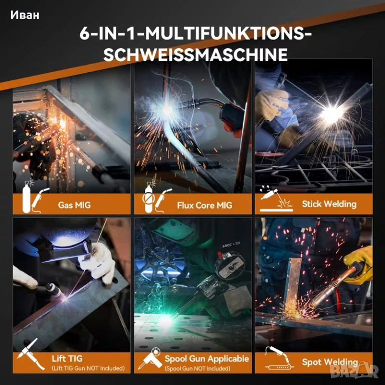 - Съвместим процес на заваряване: MIG, TIG, ARC, MMA, точково заваряване