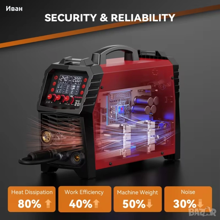 - Лесни за използване контроли: Със синергични MIG настройки, тя автоматично регулира тока и скоростта на телта, което я прави лесна за използване както за начинаещи, така и за опитни потребители.