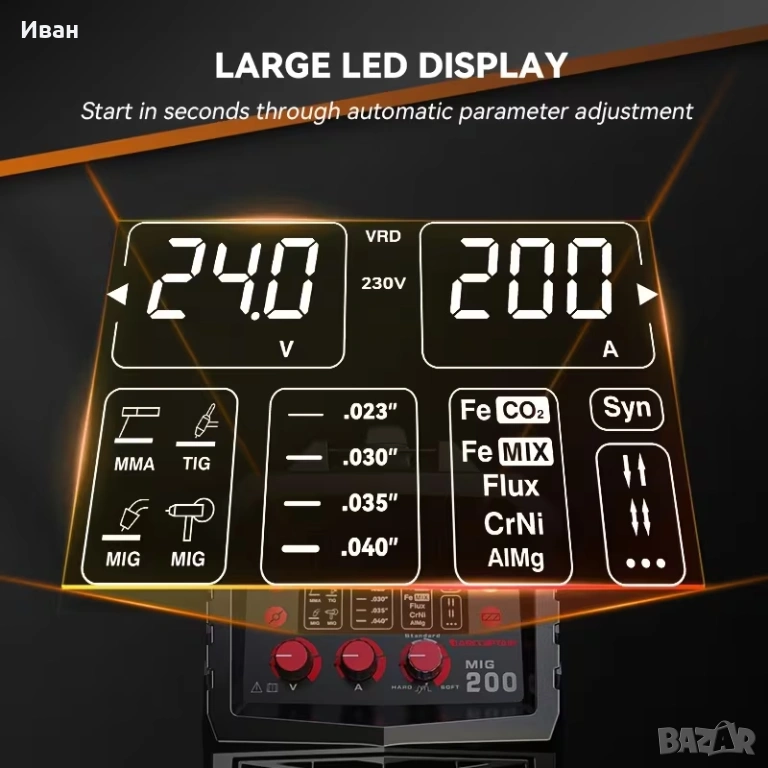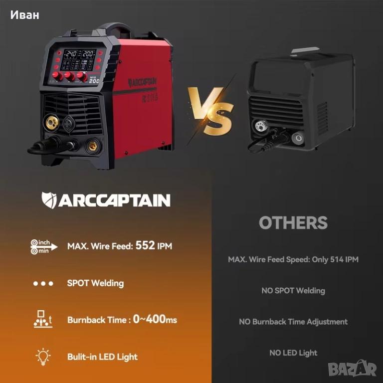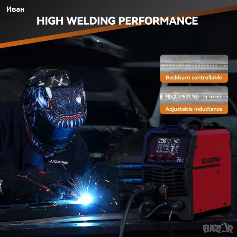 Заваръчен апарат ARCCAPTAIN 6-в-1 със Smart LED, 200A IGBT синергичен контрол.