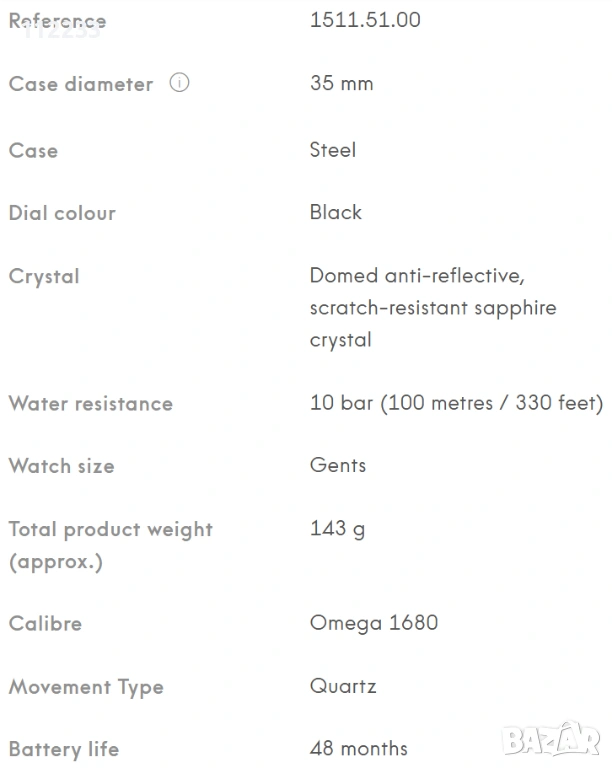 Термокомпенсиран кварц Caliber: Omega 1680// ЕТА252.511 с функция вечен календар до 2100 година и EOL (end of life).Според много мнения от различни международни форуми, един от най-добрите кварцови механизми на Omega изобщо.