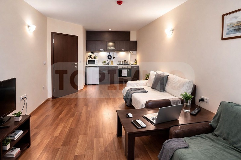 ТОПИММО предлага за продажба панорамен двустаен апартамент, разположен в елитен комплекс на първа линия море в курорт Златни пясъци.