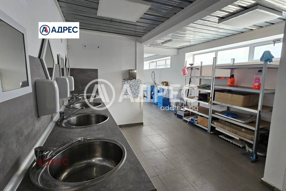 Производствено- складова база в отлично състояние, находяща се в Западна Промишлена зона. Обектът е с производствен статут, но може да се използва и за складова дейност. Изграден е от сандвич понели, допълнителна изолация с каменна вата и гипсокартон. Височина 4.83м -до 3.86м, допълнително изграден и окачен таван, противопожарна и охранителна система /с камери/ в целия обект, трифазен ток и възможност за осигуряване на мощности за всеки тип производство/допълнителни/. Отоплява се с климатици. Сградата разполага с 4 стандартни врати /3м на 4м/ за товаро-разтоварна дейност, тир подход от кота 0ла, маневрена площ за товарни автомобили, както и паркоместа за работни автомобили.