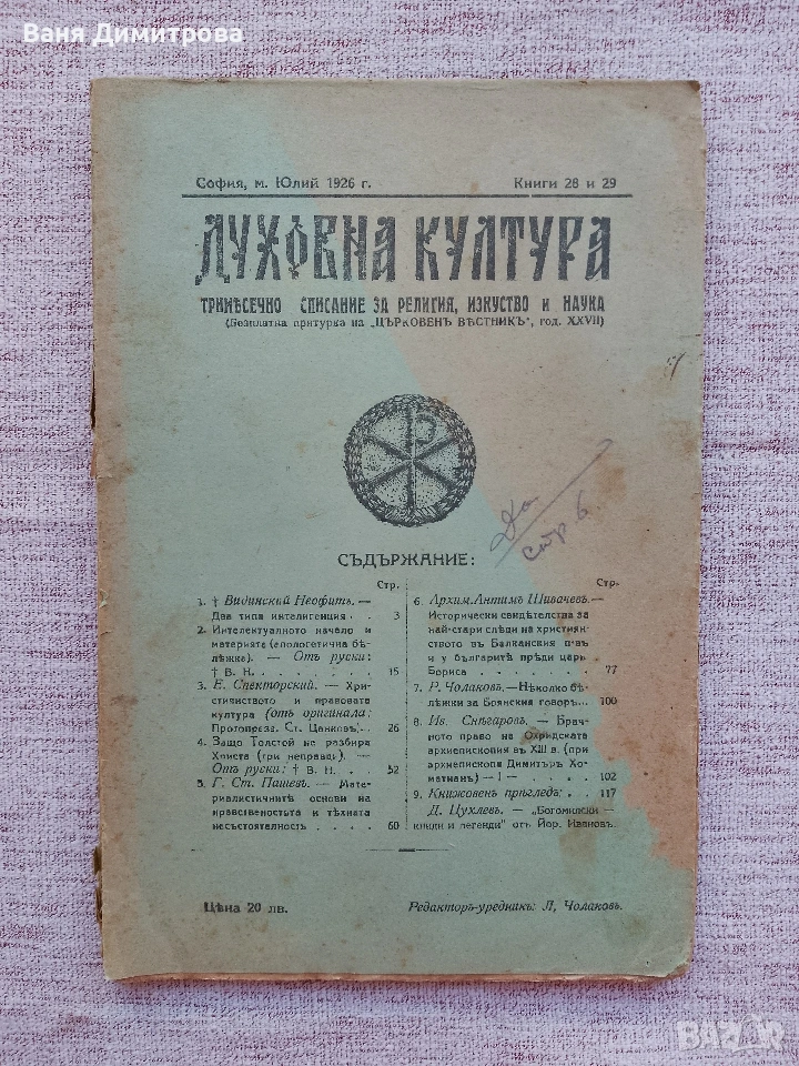 Списание "Духовна култура“, бр. 28 и 29 от юли 1926 г., → Обява 53588728