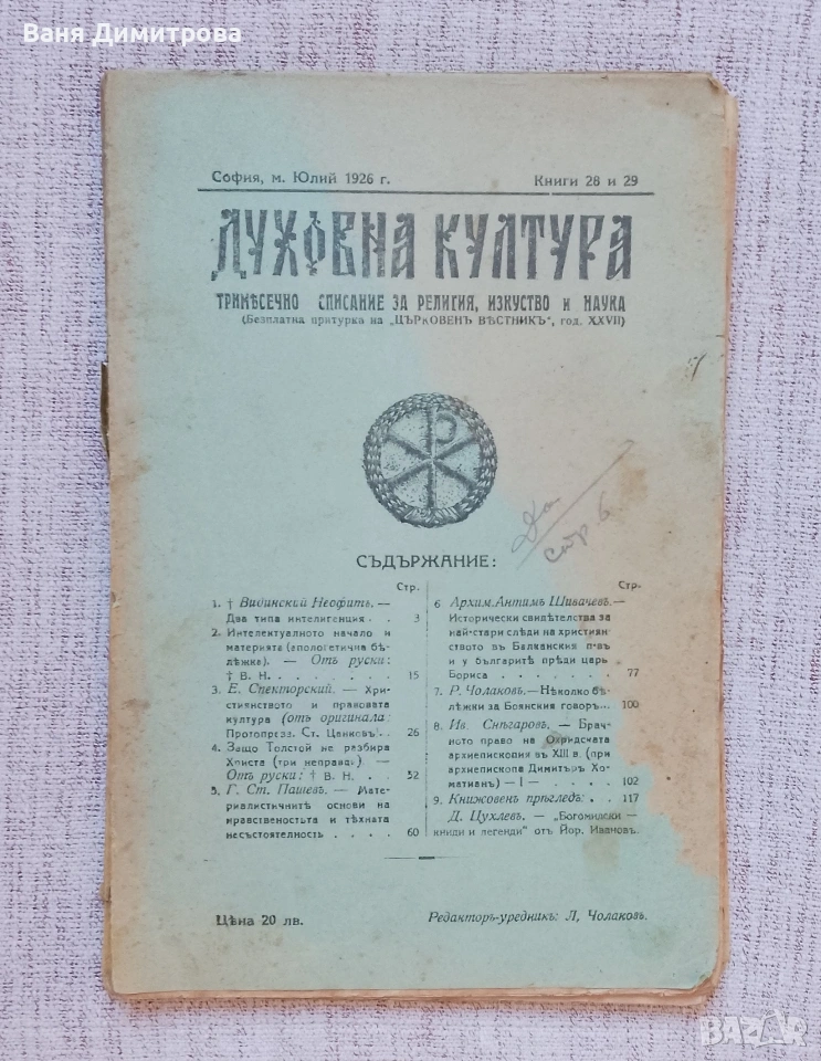 Списание "Духовна култура“, бр. 28 и 29 от юли 1926 г.,, снимка 1 - Списания и комикси - 53588728 Списание "Духовна култура“, бр. 28 и 29 от юли 1926 г.,, снимка 2 - Списания и комикси - 53588728 Списание "Духовна култура“, бр. 28 и 29 от юли 1926 г.,, снимка 3 - Списания и комикси - 53588728 Списание "Духовна култура“, бр. 28 и 29 от юли 1926 г.,, снимка 4 - Списания и комикси - 53588728 1/4