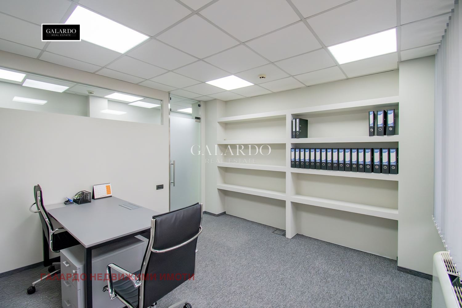 Galardo Real Estate представя офис под наем 300 кв.м. в луксозна офис сграда в ж.к. Изток. Офисът е на 4-ти етаж, с просторен open space, директорски кабинет и заседателна зала. Цената е 12 евро на кв.м., с такса поддръжка от 1,80 евро на кв.м. Три паркоместа са на разположение по 120 евро. Сградата е луксозно изпълнение, с климатизация, ТЕЦ, осветление клас А, фитнес, ресторант, двойни подове, асансьор, контрол на достъп и директорски асансьор. Охрана 24 часа. Офисът е ново обзаведен, с кухненска част, две тоалетни, тоалетна за гости, възможност за рецепция. Метростанция и парк са на 10 метра. Има и двор за пушачи.