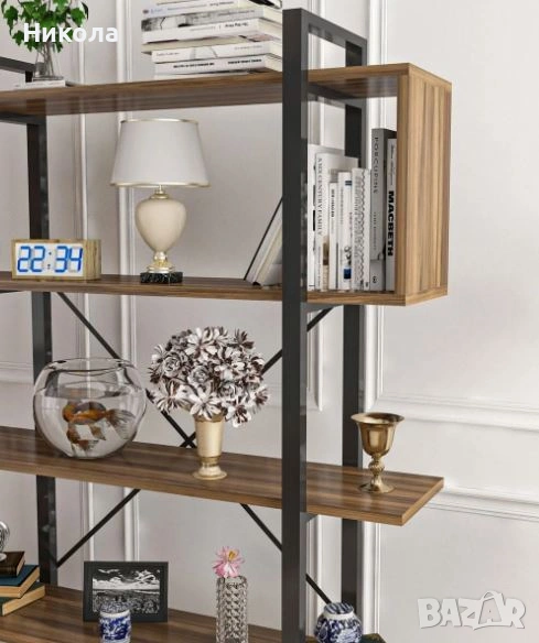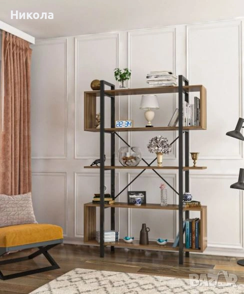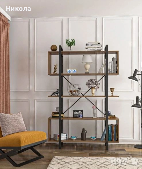 Чисто нова библиотека от стабилна,метална рамка и дървени рафтове в цвят орех.Неразпакетирана,в кашон.Продавам я защото закупих две,обаче за втората не намерих подходящо място в апартамента.В сайта на фирмата,цената е 5000тл,което се равнява на 100евро.РТазмери:височина 180см,широчина 120см,дълбочина 30см,брой рафтове 5.Само лично предаване в София.Снимките са от нета.