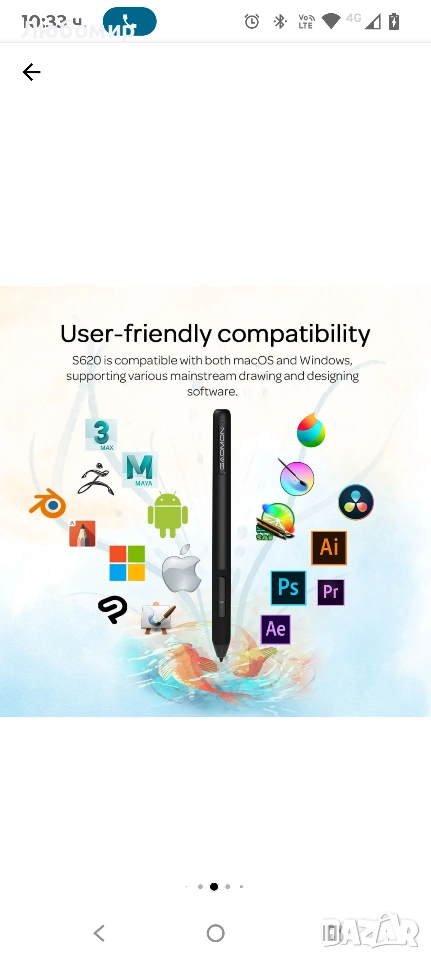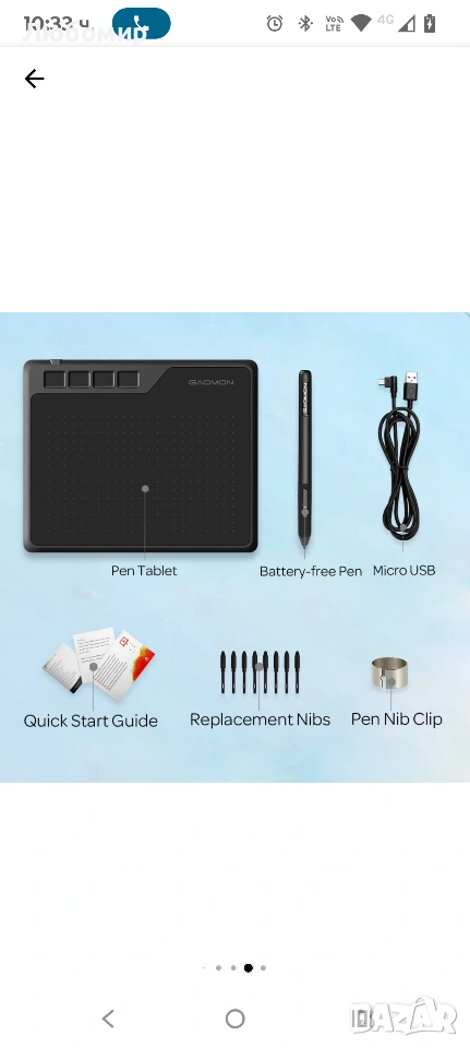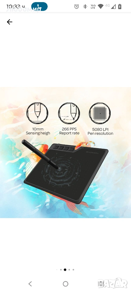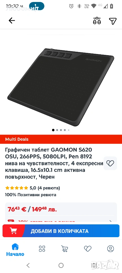Графичен таблет GAOMON S620 OSU, 266PPS, 5080LPI, Pen 8192 нива на чувствителност,